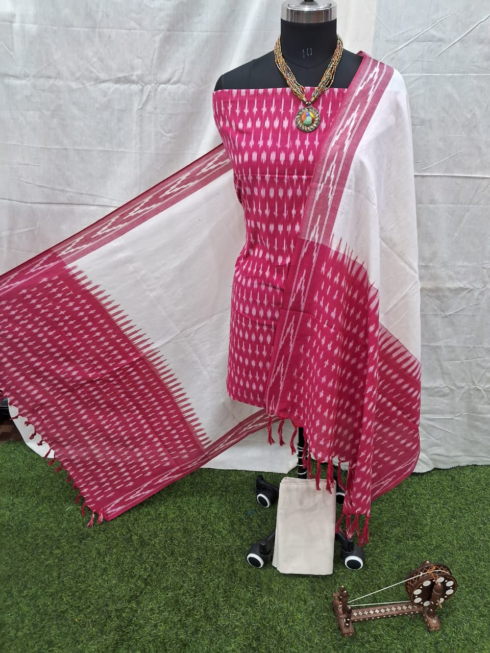 Product Description: Handloom Ikat Cotton Dress Material Set