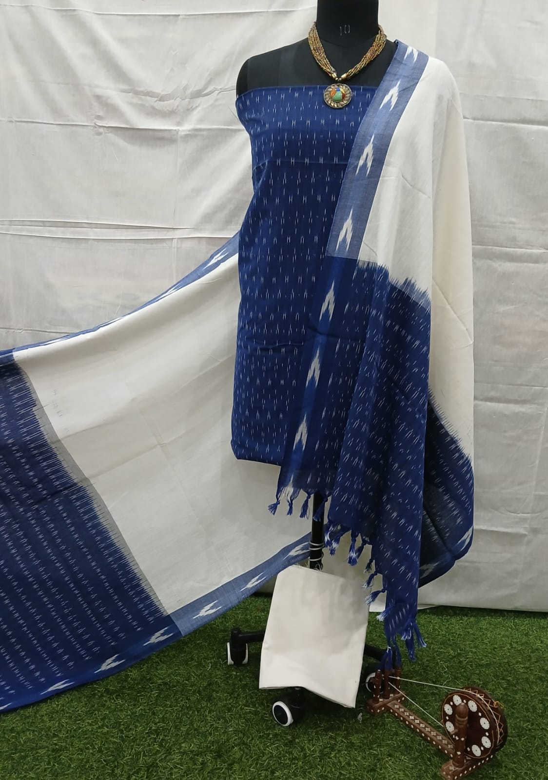 Product Description: Handloom Ikat Cotton Dress Material Set