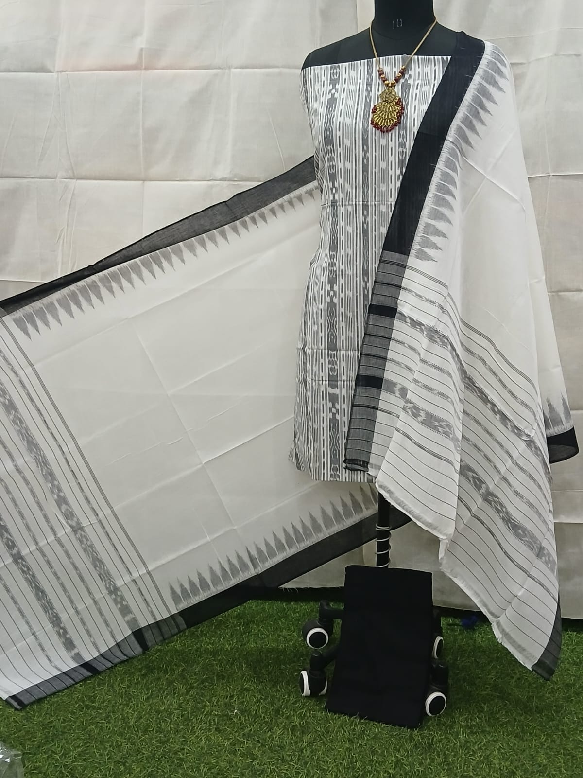 Handloom Sambalpuri Ikat Cotton Dress Material Set | White