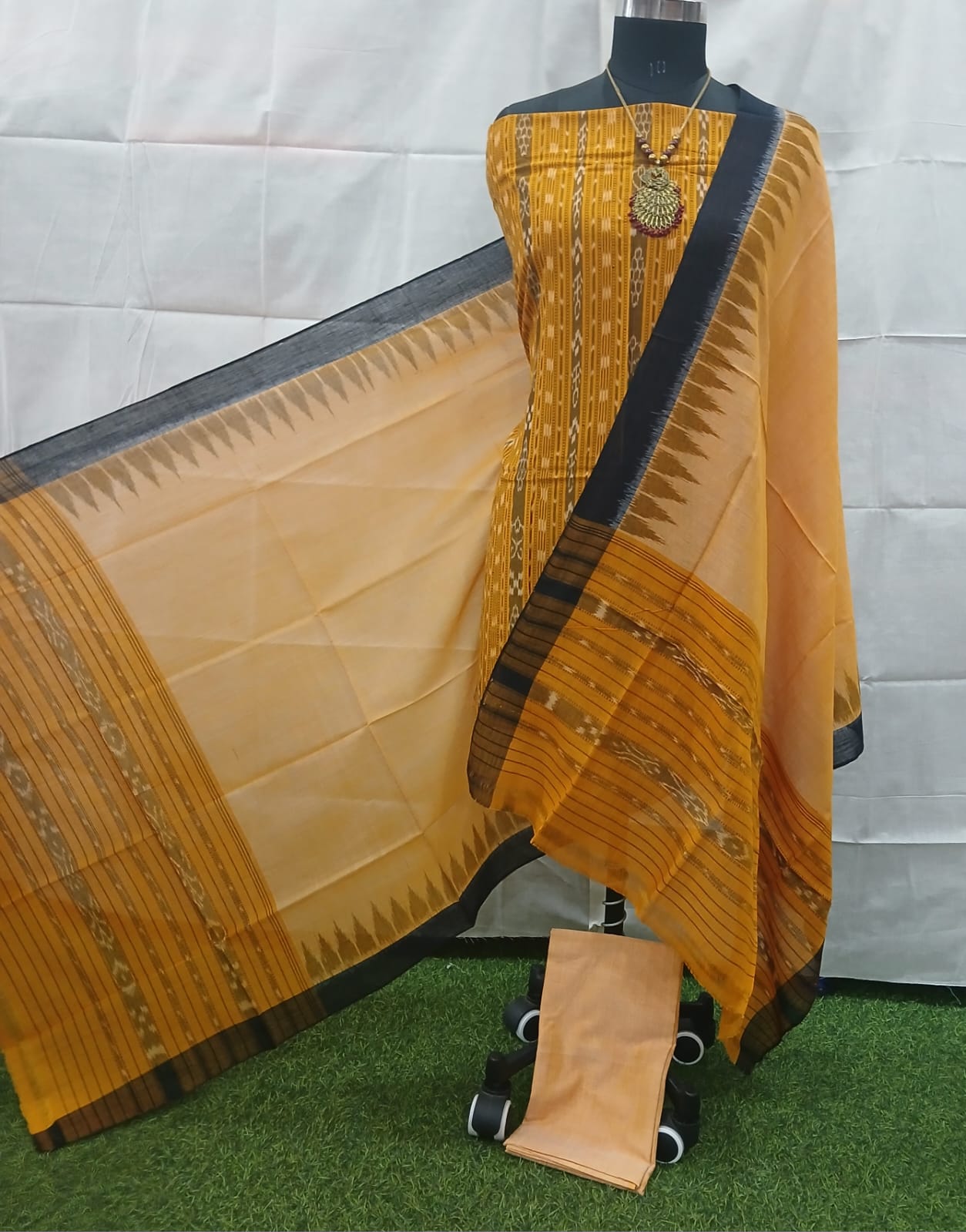 Handloom Sambalpuri Ikat Cotton Dress Material Set | Yellow
