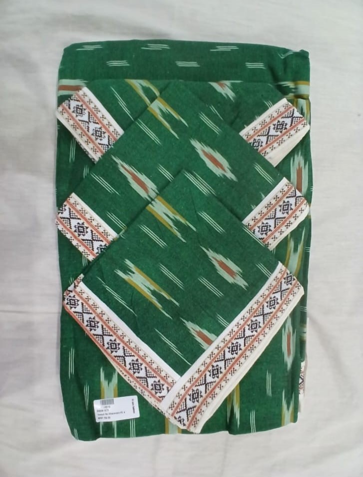 • Artisanal Weaving: Each set is created using the authentic Pochampally ikat process, where yarns are dyed before weaving to create unique, slightly blurred geometric designs.