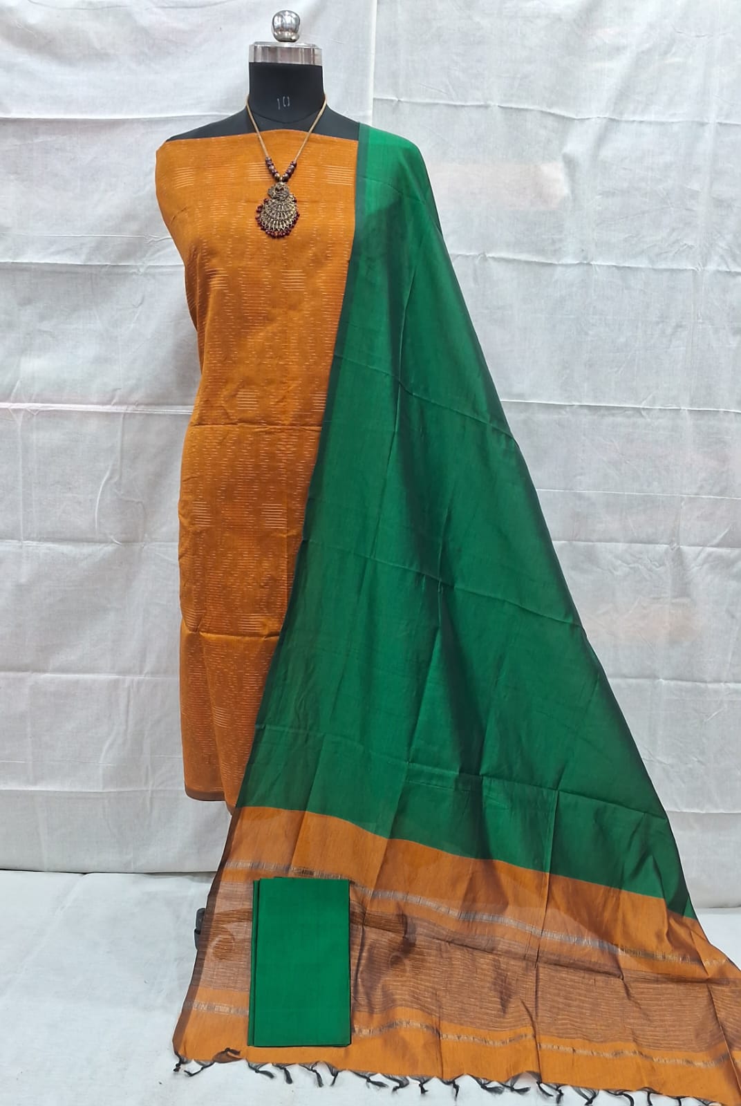 pochampally ikat green ikat border handloom set (copy)Pure Ikkat Sico Dress Materials Set