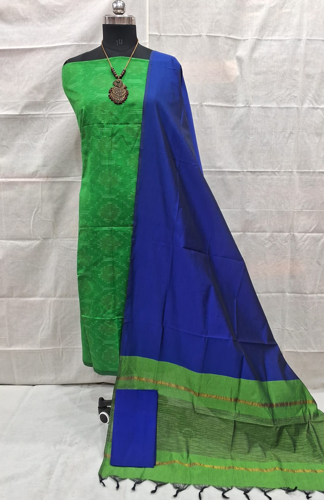 pochampally ikat green ikat border handloom set (copy)Pure Ikkat Sico Dress Materials Set